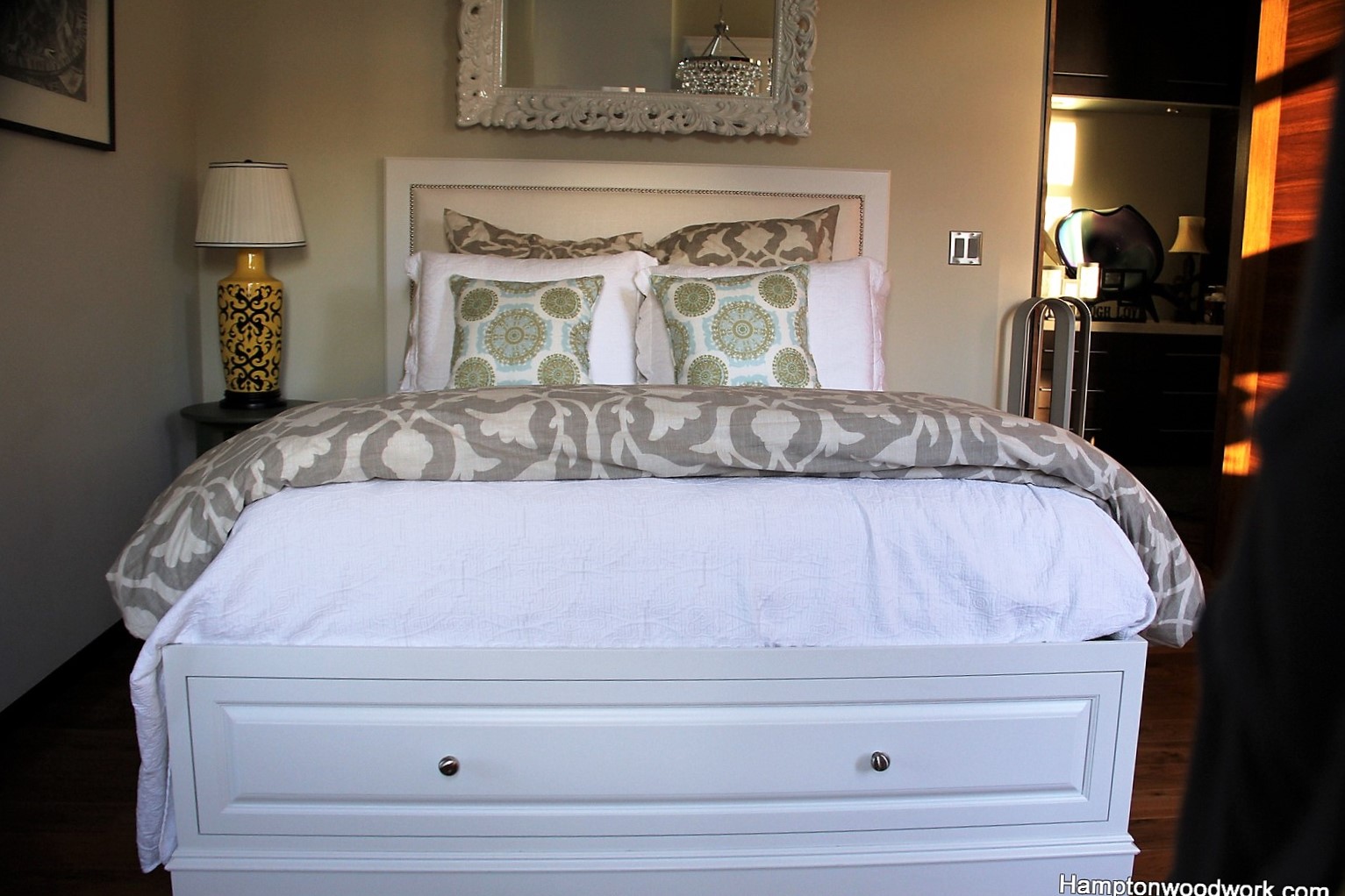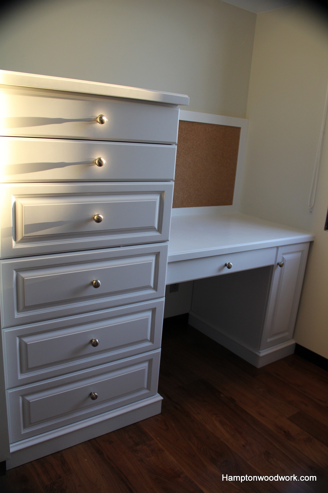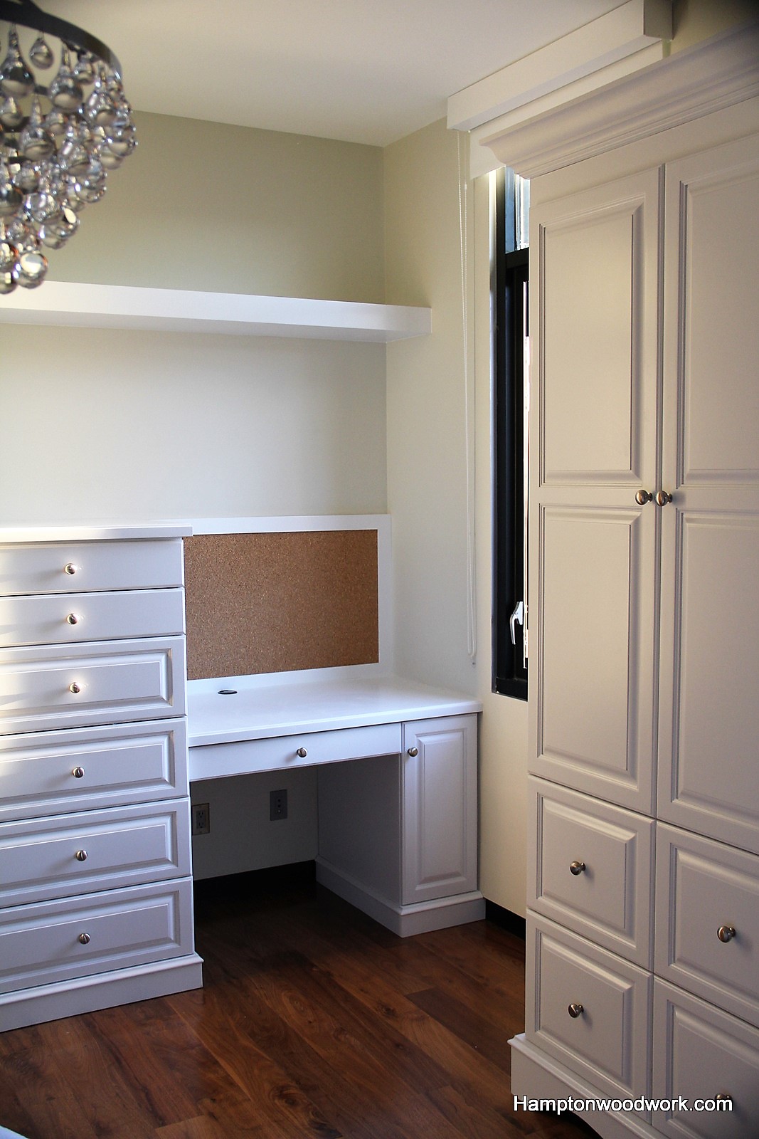 Classic Master Bedroom Furniture Set showcasing High-end Design In Lake Norman makes you feel like royalty every time you wakeup! One of a kind Built-in Desk with Queen size matching bed. Heritage style Doors and Drawer fronts painted with a Satin Lacquer Cream White Finish you can feel the elegance surround you! Created and designed By Hampton Kitchens and Millwork in Charlotte NC.