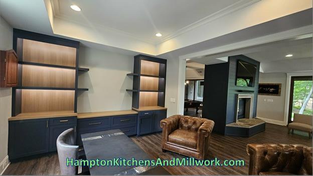 Hampton Kitchens & Millwork offers quality custom bookcases and wide range of custom built-in cabinets in Lake Norman and greater Charlotte. Custom built-in cabinets such as built-in bookcases, home office and designer bars can bring the home alive with style and comfort, adding a personal touch and the one of a kind feeling you get from custom millwork created just the way you like it. It is our passion to create one of a kind super functioning custom built-in cabinets & furniture.